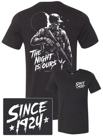 100% Cotton adult size T-shirt.Big front print with a right sleeve print.